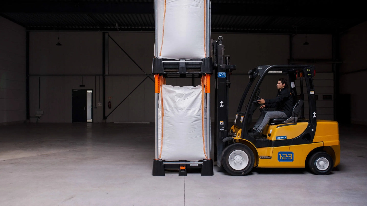 The NEVA Big Bag Handling and Storage System is the system for easy filling, safe internal and external transport, efficient stacked storage and (dosed) unloading of Big Bags/FIBCs.