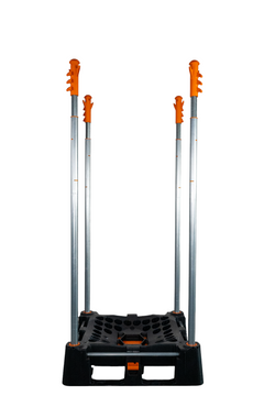 Het Neva Systeem bestaat uit een komvorming kunststof onderstel met een vanaf de zijkant te bedienen los- en doseerschuif en 4 stalen buizen met speciale kunststof koppen en voeten voor de fixatie van de Big Bag en voor het doorstapelen van de systemen.